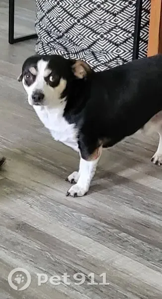 Dark Black and white beagle chihuahua deuschund mix breed. Big dark eyes. Big butterfly wing ears. Broke off collar at honeybee park and bolted and ran.