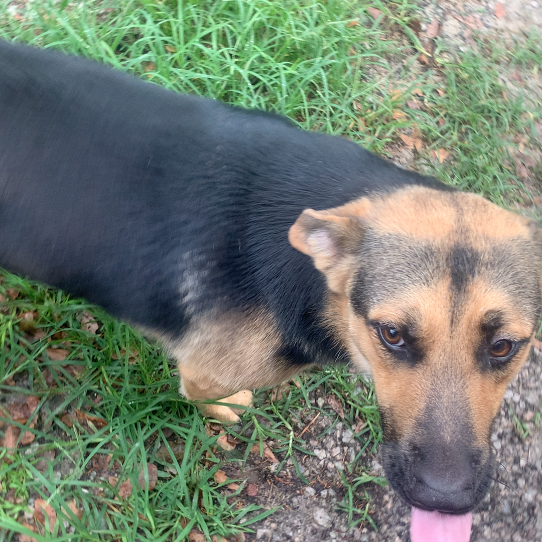 Black and brown German Shepherd mix with brown paws. She’s slightly overweight. She escaped from the fenced in yard during the night with our other dog Bruno.
