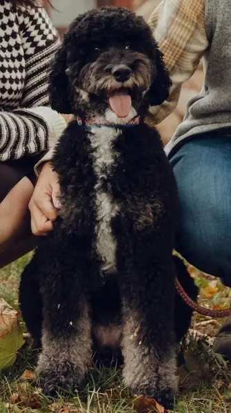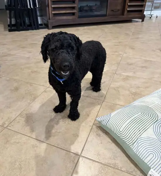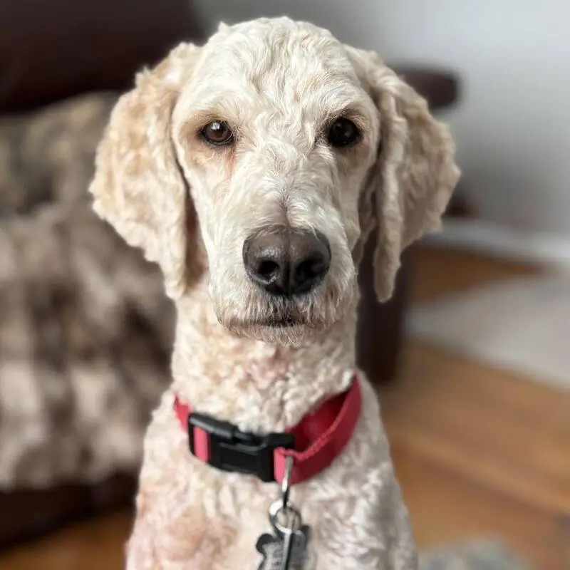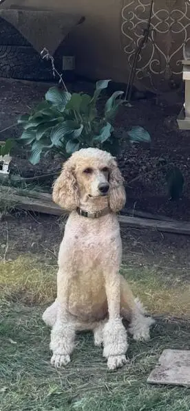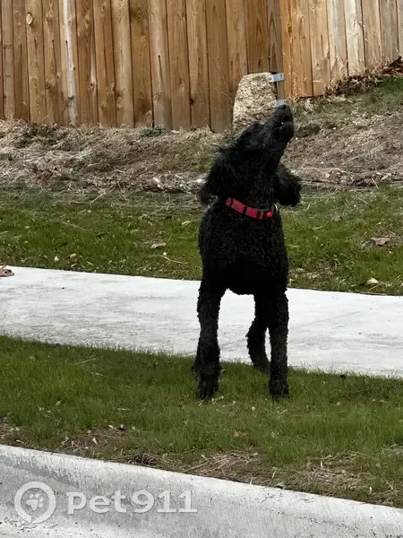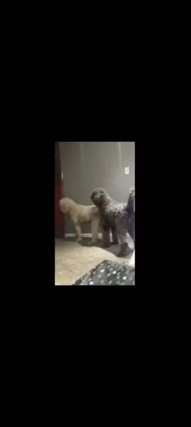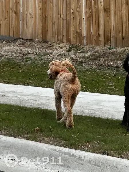 Two dogs, one black, one tan. Both have red collars. Looks like poodle or lab mix? Recently groomed. Barked when I tried to have them jump in my car. I was not able to pick the dogs up.