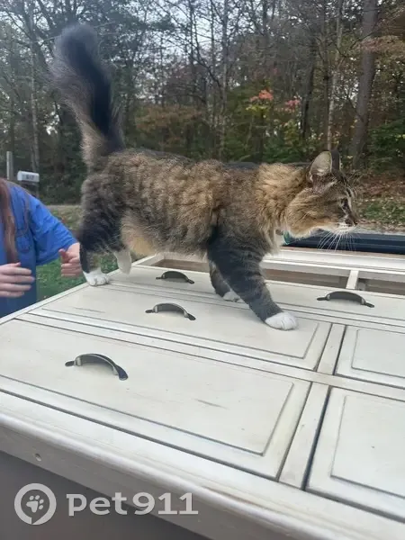 Brown and black tabby pattern with white paws a white chin/chest, medium length fur, sneaky and independent but moderately food motivated. Knows how to be outdoors but is normally indoors. Smart enough to break into enclosed spaces like crawl spaces and sheds. He is very proud so scratching and biting is not uncommon but he is vaccinated and neutered, but has challenged a tom cat before. Avoids cars, dogs, and strangers.