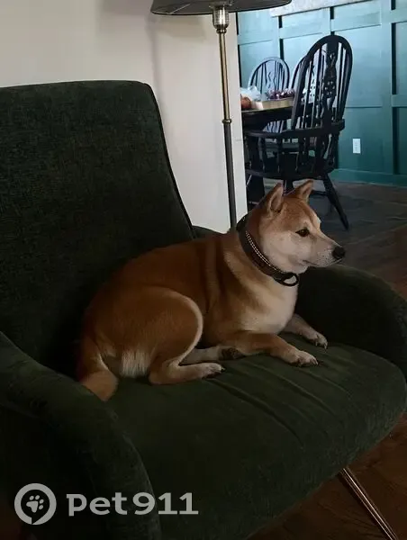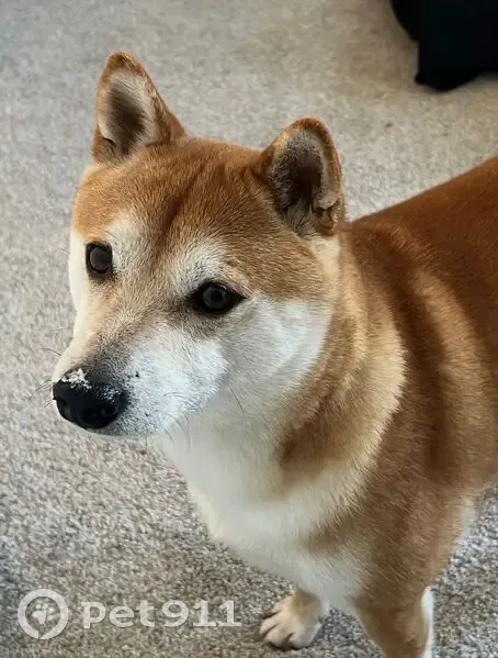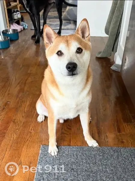 He is orange brown with a white belly. His ears are usually super pointy. His tail is usually curled. He is kinda skiddish and loves little treats. He is not wearing a collar. Male and neutered.