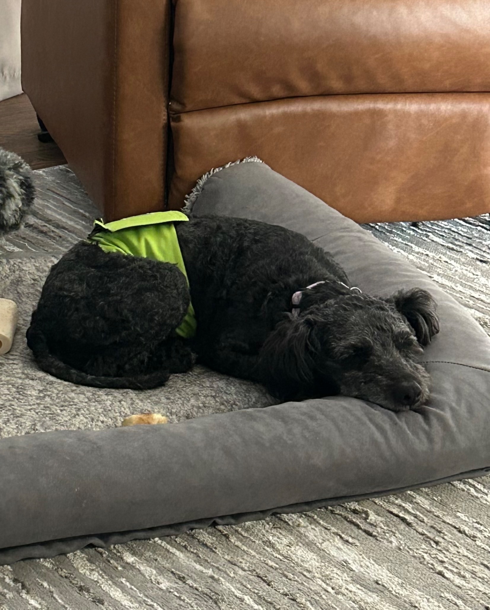 HELP: LOST DOG 15 lb mini poodle. Mostly black and gray with some white patches I tripped and dropped leash at Roseville Petco at 1 pm. Has green leash dragging behind him. Here are his leash and foot prints. Please call or text with sightings 920-228-0873. He has been reported missing with Roseville PD and the retrievers are involved. Update: 4 pm last seen at 2560 Long Lake Rd, Roseville, MN 55113. Update 4:30 pm: last seen by husband within Roseville industrial area. He doesn’t like traditional treats. He does love kibble and meat https://petfbi. Org/api/view/768968/023858ad#/