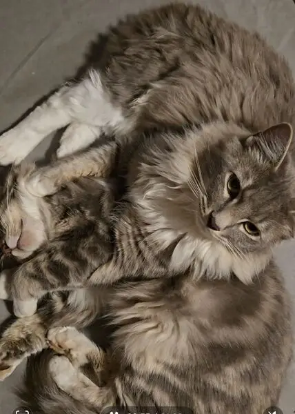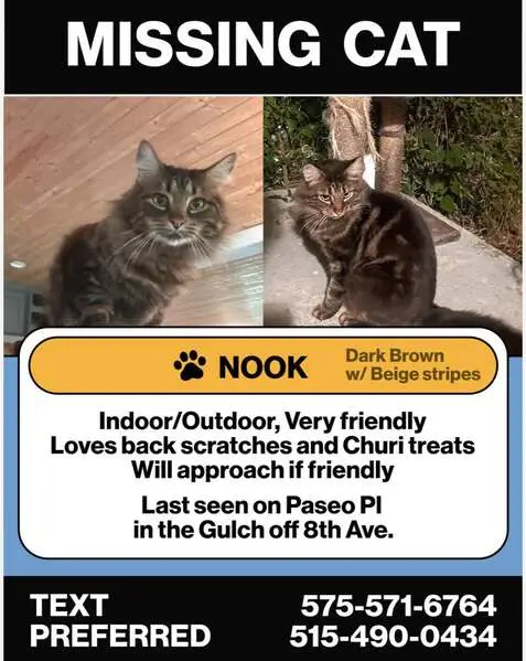 Meatball is, well, the color of meatballs. He is a mostly black and brown tabby with a white chin and salmon colored nose. He has bright yellow eyes. He is a medium to long haired cat. The vet said he is 8 to 12 months old. I found him eating garbage in my yard. He was starving, had worms and fleas. Poor baby was only 7 pounds when I found him. Now he is closer to 11 pounds. Meatball loves kibbles, and wet food. Fish flavor is his favorite but he will eat almost anything. When he drinks water, he gets it all over his face. It’s absolutely hilarious. He is learning to trust humans again, I have no idea what he went through but I have a feeling it was a lot. I got him fixed, chipped, treated for worms, fleas and an upper respiratory infection. Feline leukemia and FIV negative. Meatball is looking for his long lost family or his forever home I cannot keep him as I do not have the resources. I have 2 other rescue cats. I have tried for months to find his owner or someone who will love him and give him a good home. I will not take him to a shelter because he is too sweet and scared.
