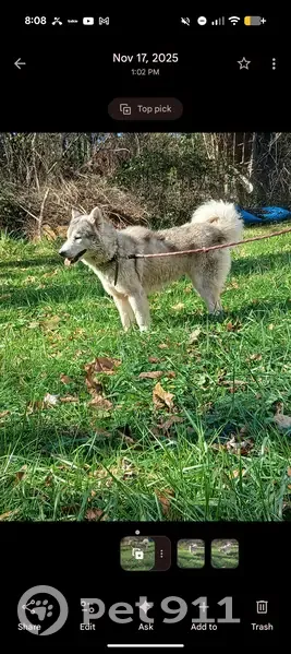 She's a Gray and white Siberian husky, she's mixed with gray wolf. She's got black underneath her nose and on her bottom lip, she's got just a little bit of black at the corner of her eyes, her stomach white. She did have on a black collar but I don't know if that's been tucking off by whoever stolen her from me, her name is Angel and she's very friendly. She'll come to you if you have treats or food in hand, please help me find my fur baby ️