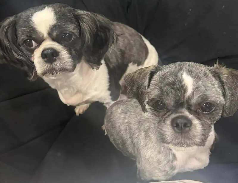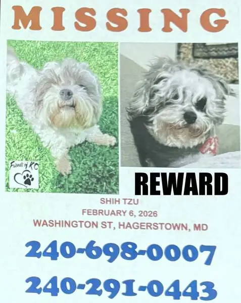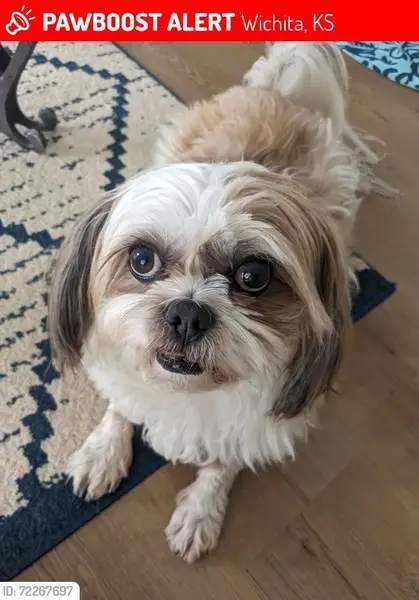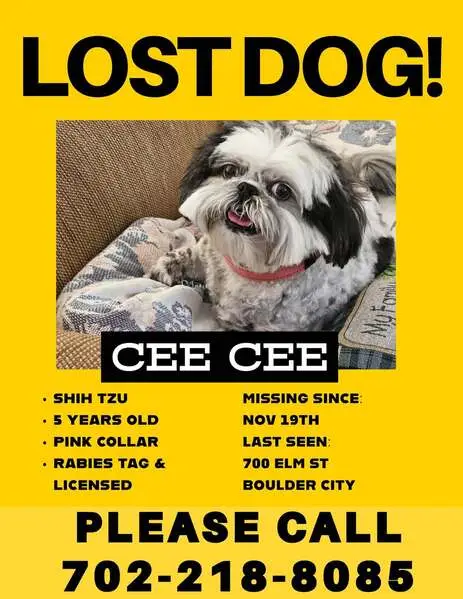 White , grey , brown all over . Older dog that looked scared & tired . No collar & just laid in the middle of the road when I drive up to her .