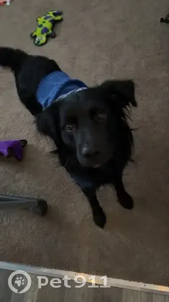 He is black with a white spot on his chest. He’s a border collie/golden retriever mix. Long hair on ears, tail, arms, legs, and main. He was let out with our other dog to go potty. Both dogs took off. One was found down the road and sable was never recovered and has not been seen by anyone. He is very sweet, he’s a spazz when meeting new people, very lovable, cuddly, and vocal. And high strung. He is not neutered, 3 year old, and somewhere between 35-50 pounds.