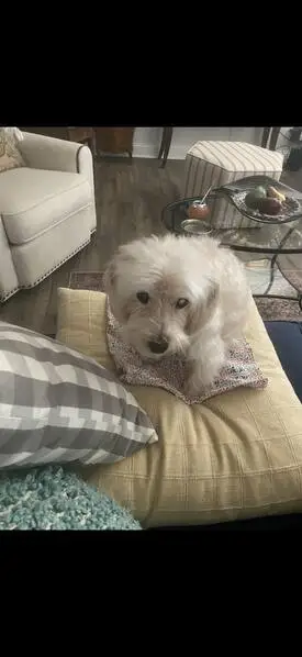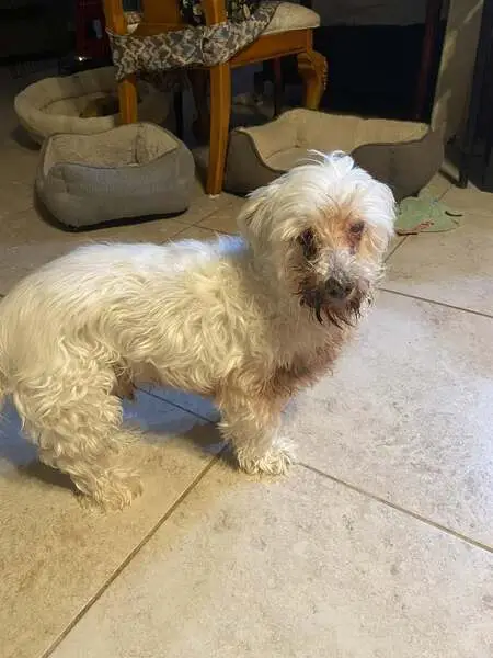 Small poodle with longer fur on head, appears well fed, no fleas, possible cataracts. Maybe 10 lbs. She hopped up onto my porch and onto a chair, so she has moves. She is at the Bradshaw Animal Shelter as of 12/19. If the owners aren't able to collect her, she will likely be available for adoption starting on 12/24.