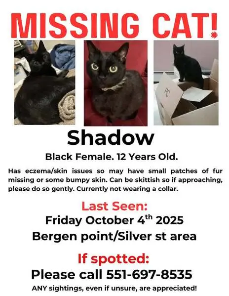 He also goes my Morpheus. He is a black tuxedo cat, about 4-5 years old. Super friendly but a little skiddish. He has half a white mash and a white spot on his chest right by where is heart would be! All white paws, longer white “socks” on his back legs