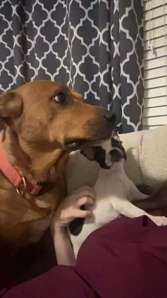 Wearing a “play on” dog collar. Carmel, in tact, male terrier / dachshund mix. Collar, no chip, no tag. Well behaved, well fed.