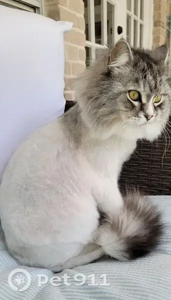 Sammy is a 16 years old, white and grey cat, with a shaved lion cut. He is shy but also friendly. He responds to his name. He was in front of our home, when we last saw him. We live within the subdivision of Elm Creek. Kindly contact us if you see him. 917-216 8548 or 201-673 1339 Thank you!!!