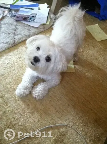 MOXIE IS WHITE, curly tail 10 lbs 14 years old nearly deaf bad cough needs meds missing some front teeth. No collar but microchipped. He has several growths common to poodles.