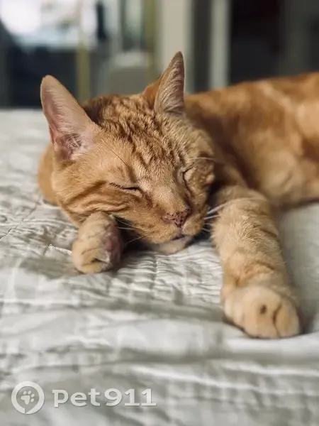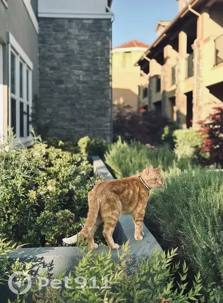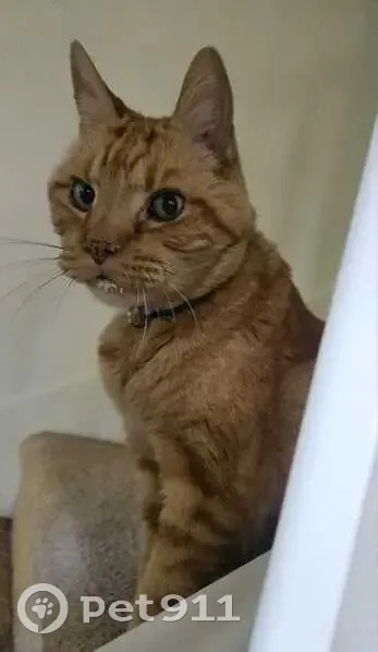 Orange tabby, 14-years old, 10-pounds. He’s very friendly and social. Last had on his blue collar with a tag that includes his name and my telephone number.