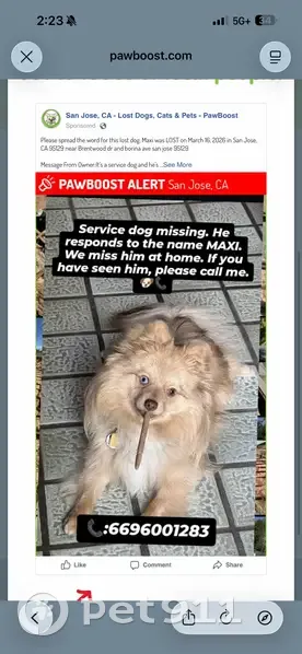 Pet911.orgSan JoseLostDogsLost Собака, Brentwood Drive, 889, San Jose - service dog named Maxi