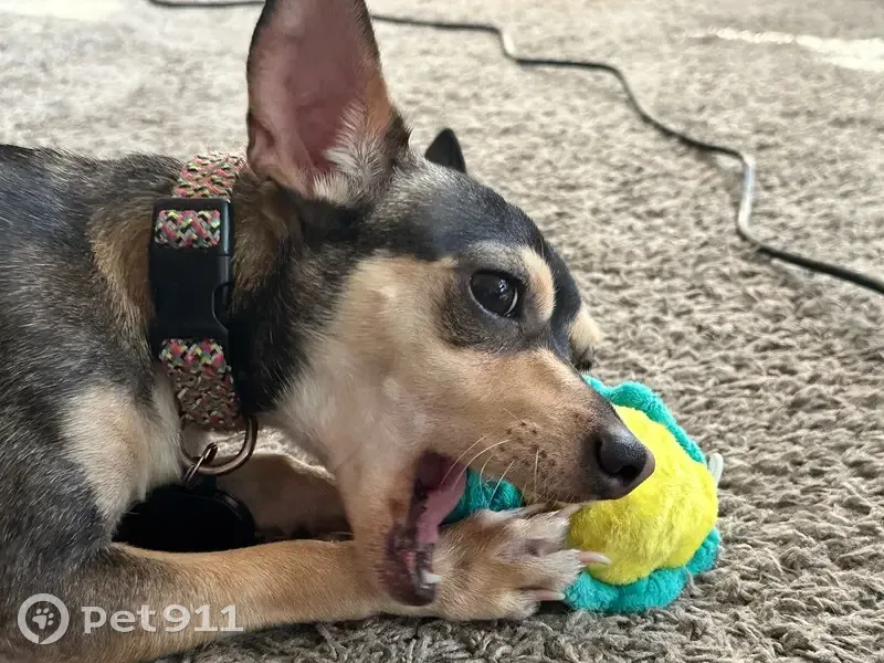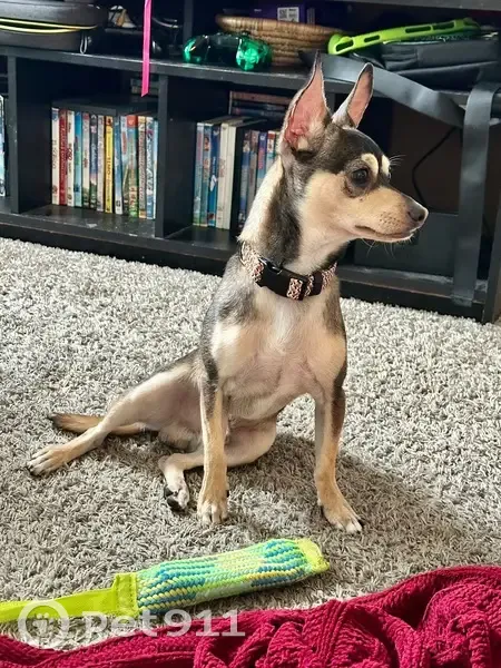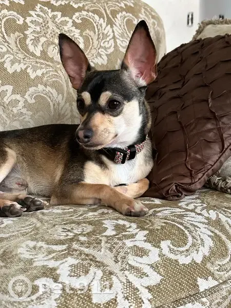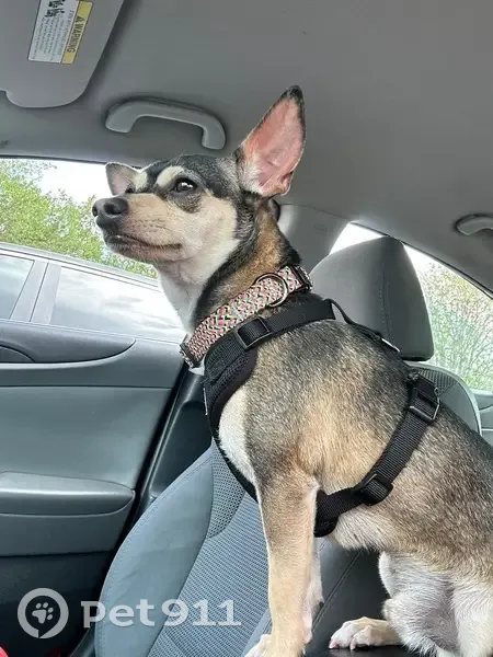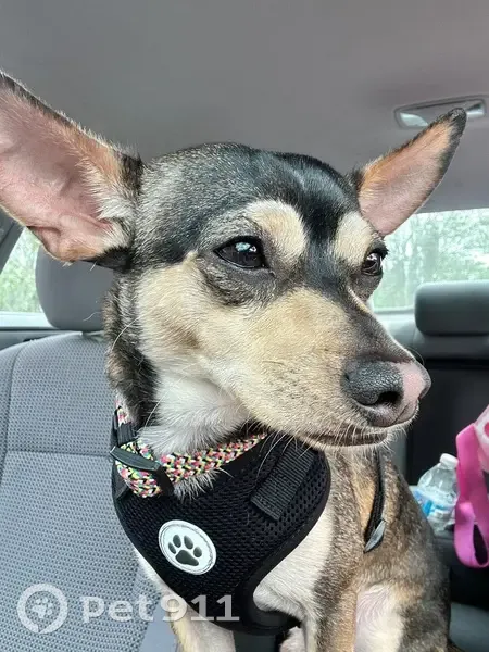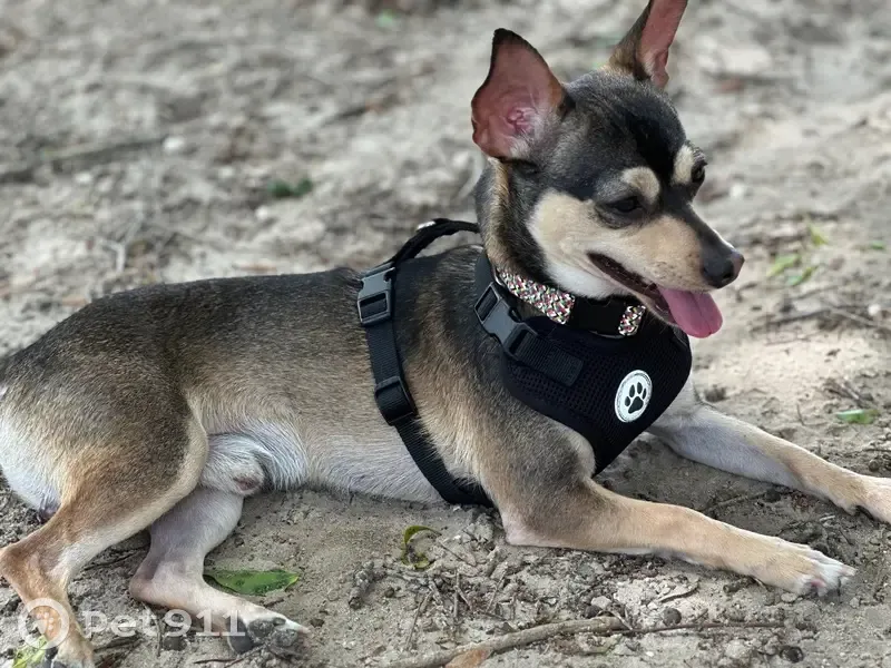 He is a male Chihuahua mix. His coat is black, brown, and a tan/beige. His eyebrows are brown and he has a pink split down his nose. He also kind of looks like has a black cross on his face. He was last seen September 27th, in Carriage Cove Community in Sanford. My family and I would appreciate everyone’s help in finding him. We have recently set up a dog run for him to be on outside while the kids play (since we don’t have a fence and don’t want him to run off). He was on on the run the other day when he got loose and I thought it was just the collar that wasn’t tight enough and he just slipped out but now this time he slipped out of his harness while being on the run as well. Someone suggested getting a cat harness for him since he is such a small dog (only 12 lbs). I don’t know if I just need to fix the harness situation or if I just can’t have him out on the run because if he sees another dog or a cat he will try and run off to say hello.