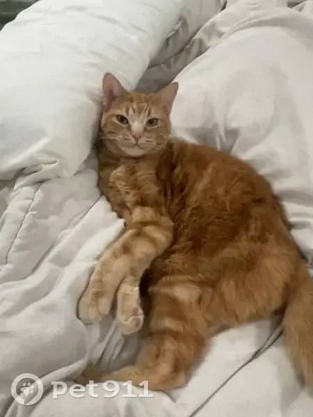 Orange & white tabby, 9lb petite cat, freckles on her nose & mouth, she is an indoor cat that is very skittish.. So she is going to be very frightened. She is so sweet & gentle, so if anyone finds her she isn’t going to be hissing or being mean. She snuck out our back door Friday night and we didn’t know. She got locked out and the gate on the side of our house was open. That’s how she got out.