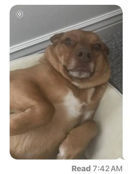 Reddish brown, behavior very Mello and calm, loves people and other dogs. Healthy, no micro chip, well taken care off you can see where he did have a collar.