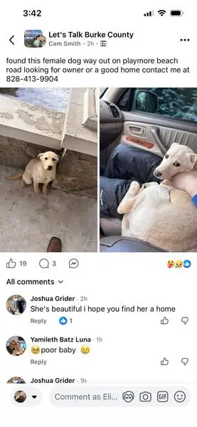 I came home last night and as I opened the car door this dog jumped right into my car. She has been fed and taken care of throughout the night. I brought her to Chatham County Animal Services this afternoon. She’s very friendly and very hyper. I don’t think she could’ve been out for more than a couple hours because she’s still clean, but she was cold and dehydrated. She’s also pretty obedient other than the fact she’s speedy.