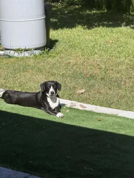 Male young Black Lab with white on paws, a little white on his nose, and white stripe running down on his chest. He seemed somewhat malnourished. His ribs are showing on both sides. He was spotted running loose on Clay Avenue in a lot. Has a slight odor. He appears to be about two years old. He's trained. He knows how to play with a ball. Seems housebroken. Once I found him, it didn't take long to get him. He went right to a nearby house with a female dog and tried to approach them. He seems very friendly. He was hungry and very thirsty. He's a sweet dog. His owner may be looking for him. He may have escaped due to being in heat. His coat looks good. His paws and nails were in pretty good condition, so he probably lived nearby. I walked around the neighborhood - 16 blocks total. The police were notified. The SPCA may be coming by in the morning.
