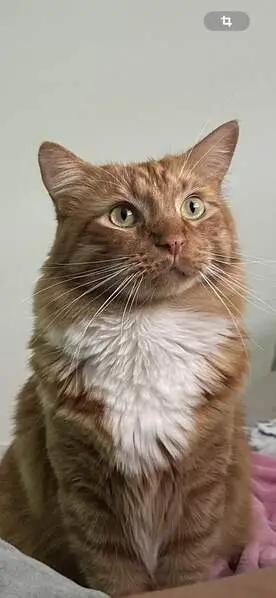 Are you missing a orange furbaby? Very friendly and vocal. His ear is cropped initiating that he is neutered. His eye was worse when he arrived. He was given antibiotics and ointment. Seems to be improving. Please msg if you can help the Orange guy get bk home.