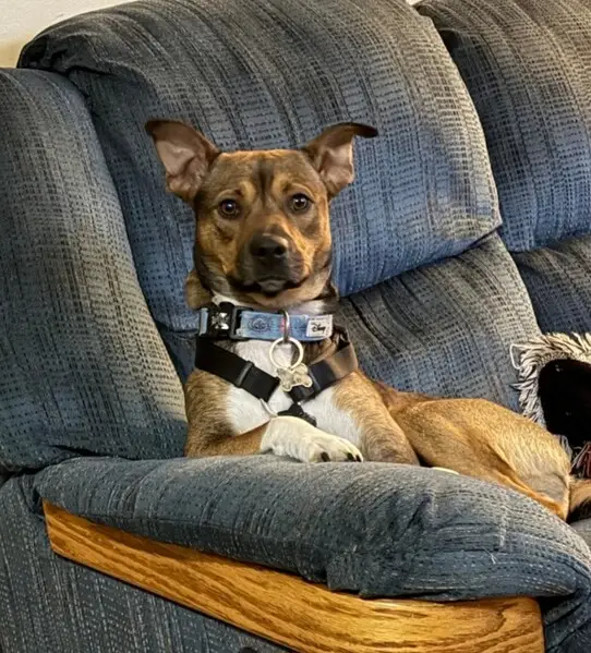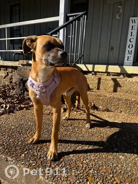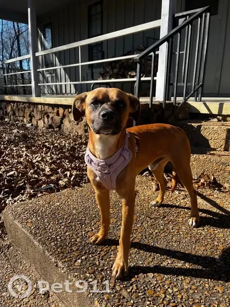 Reddish Brown short haired boxer mix, with black detailing, brown eyes, no collar. He showed up on my driveway and started trying to play with my dogs who were outside too (one on-leash one off-leash)