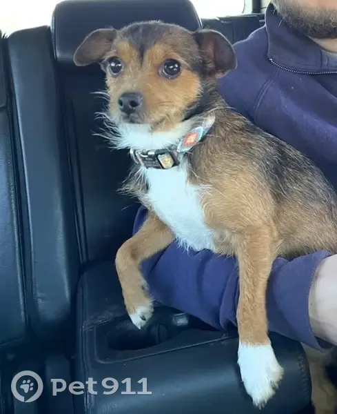 Allie is a small brown dog with a hint of black and a white underbelly with white paws. She is currently not wearing a collar. She jumped out of the car after rolling down the window. She is scared but a very good dog. She don’t like strangers but she don’t bite she only growls.
