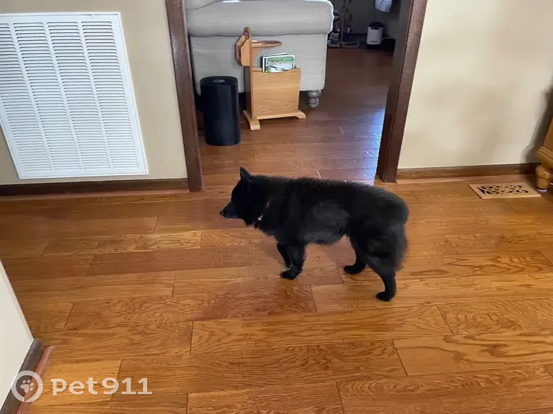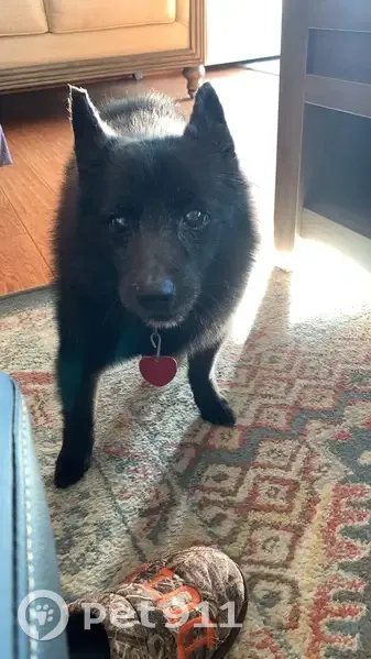 Fully black Schipperke, her eyes have cataracts, her ears almost touch when she points them up. She was at home outside and just ran off, she was seen on Kimberlin Heights Road in 7 Islands Tuesday morning and has not been seen since. She may stay to the road, but there is a forest all around.