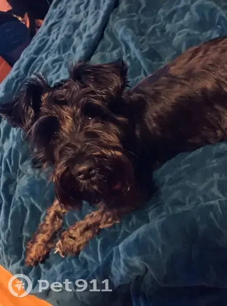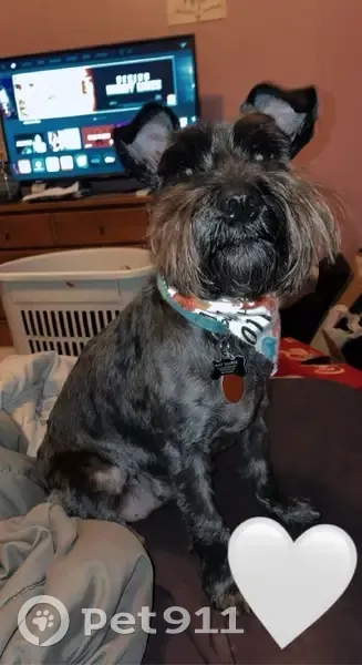 All black female miniature schnauzer (bearded dog), spayed, blue collar with info provided. Willow ran out the door on 3/31/26 around 5:30am in “The Stables” on Boyd’s Creek Hwy. I believe she may be at a neighboring house and someone is holding her from me. She could also be in the wooded area behind The Stables. 8653326488
