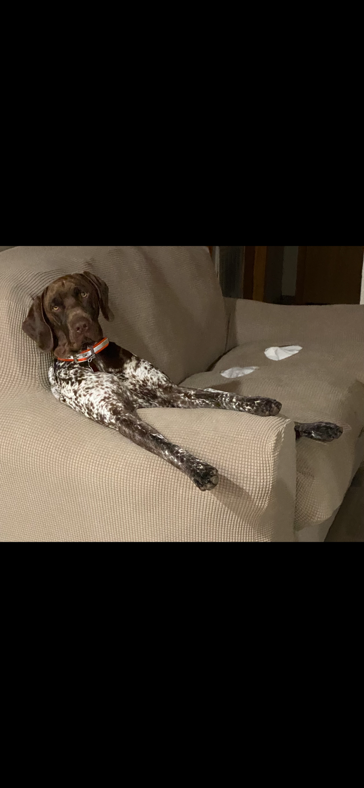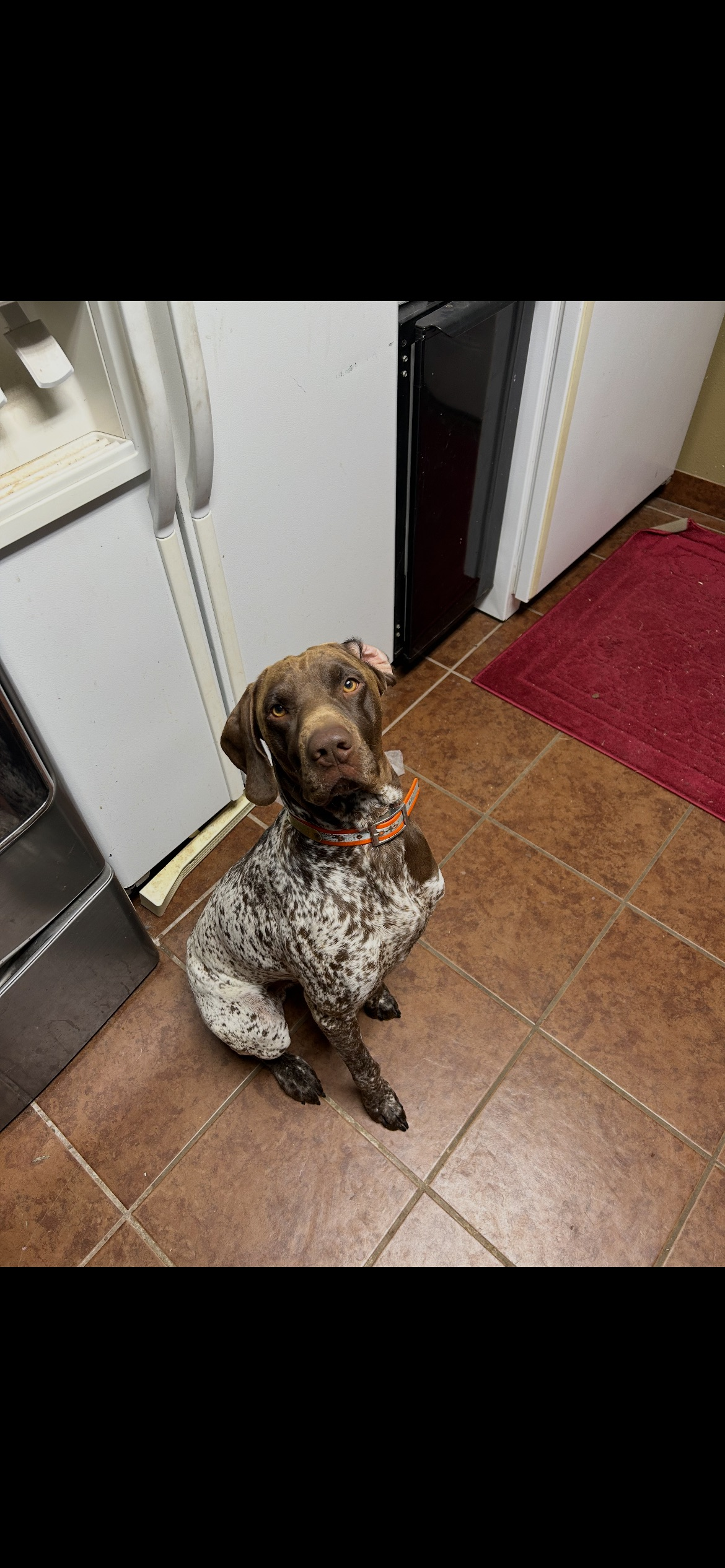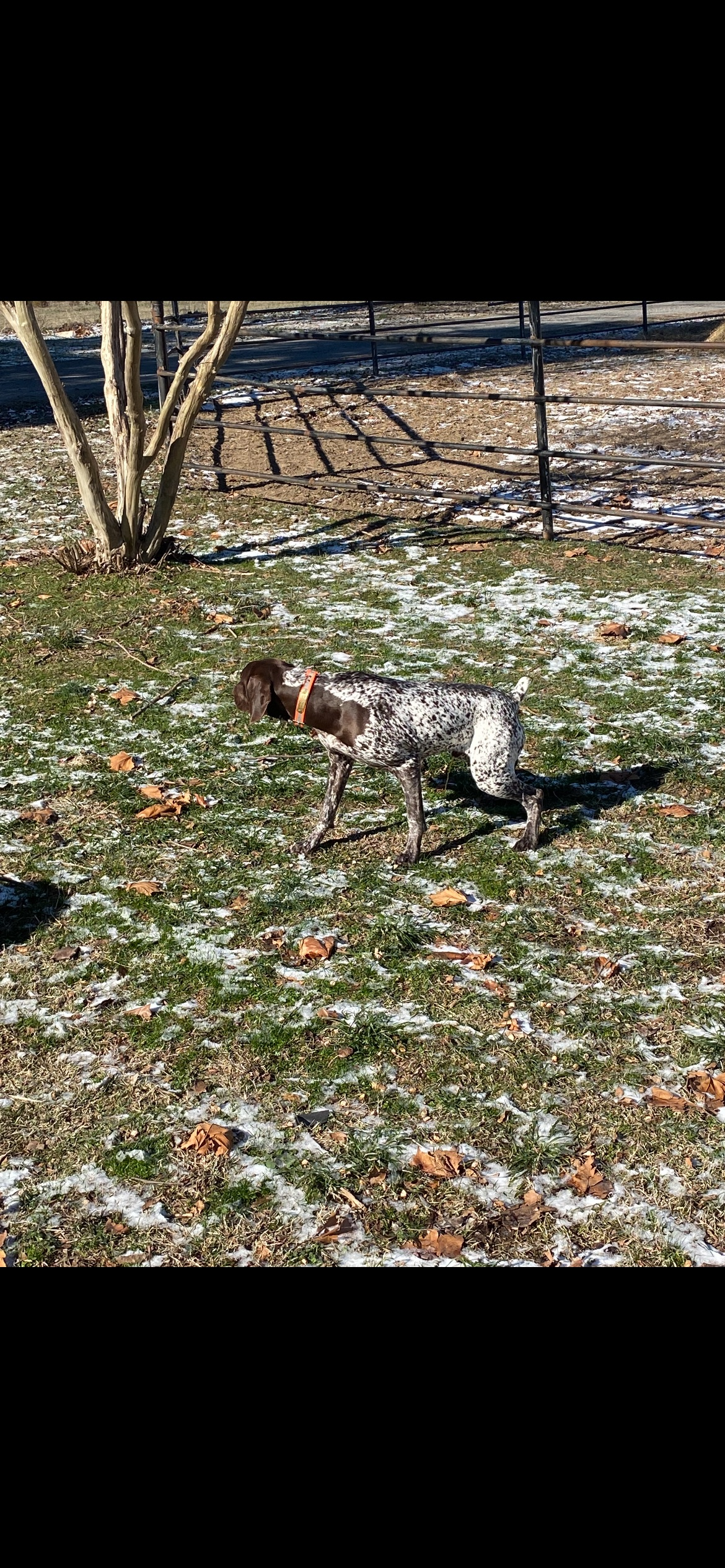 LOST! German short haired pointer! Very friendly! Has a blue reflective collar with my name and phone number on it. Last seen seen behind the Palestine Baptist Church on highway 35n