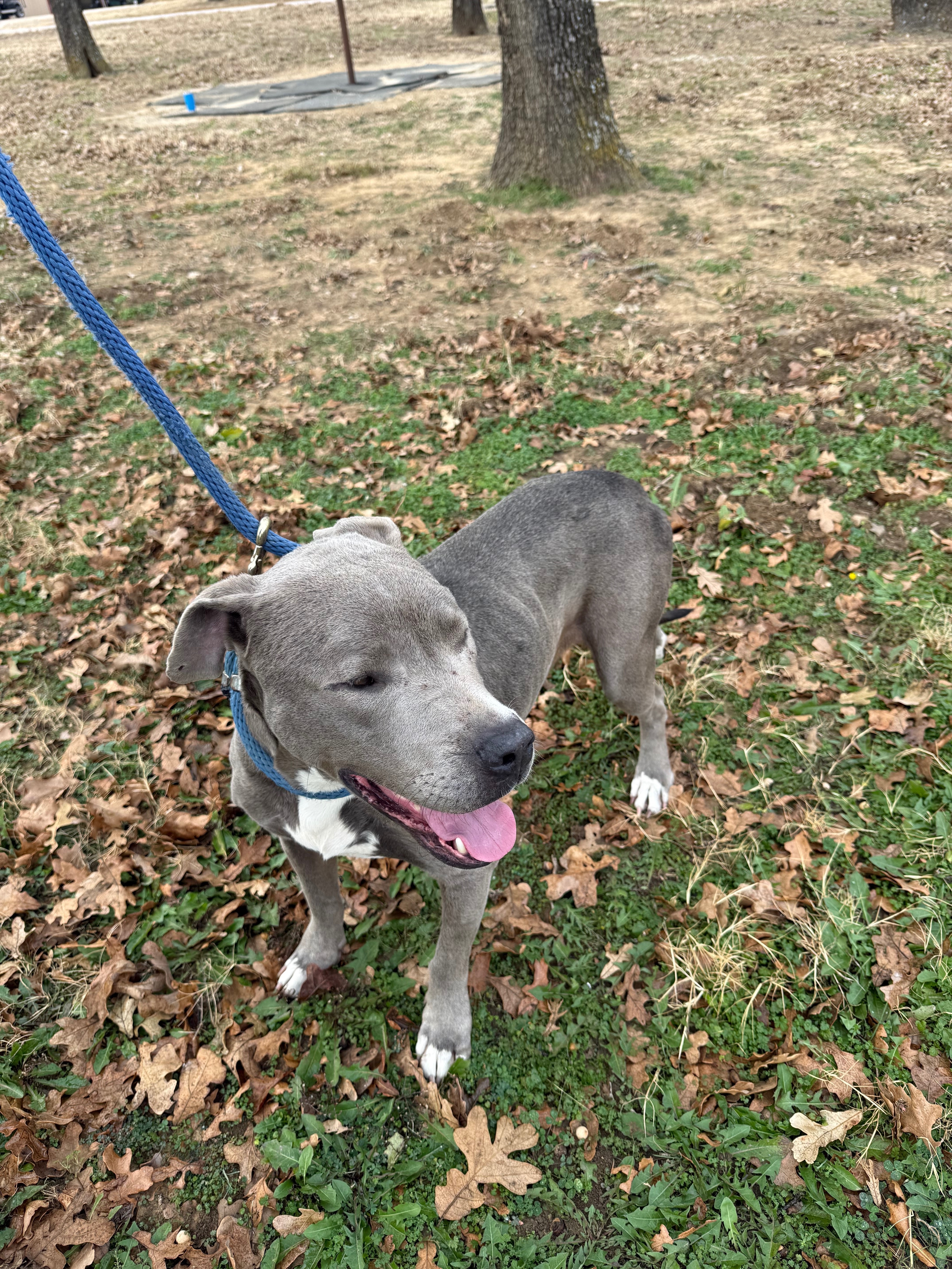 Found dog Whitesboro, photo: Found: Friendly Grey/White Pitbull in Whitesboro