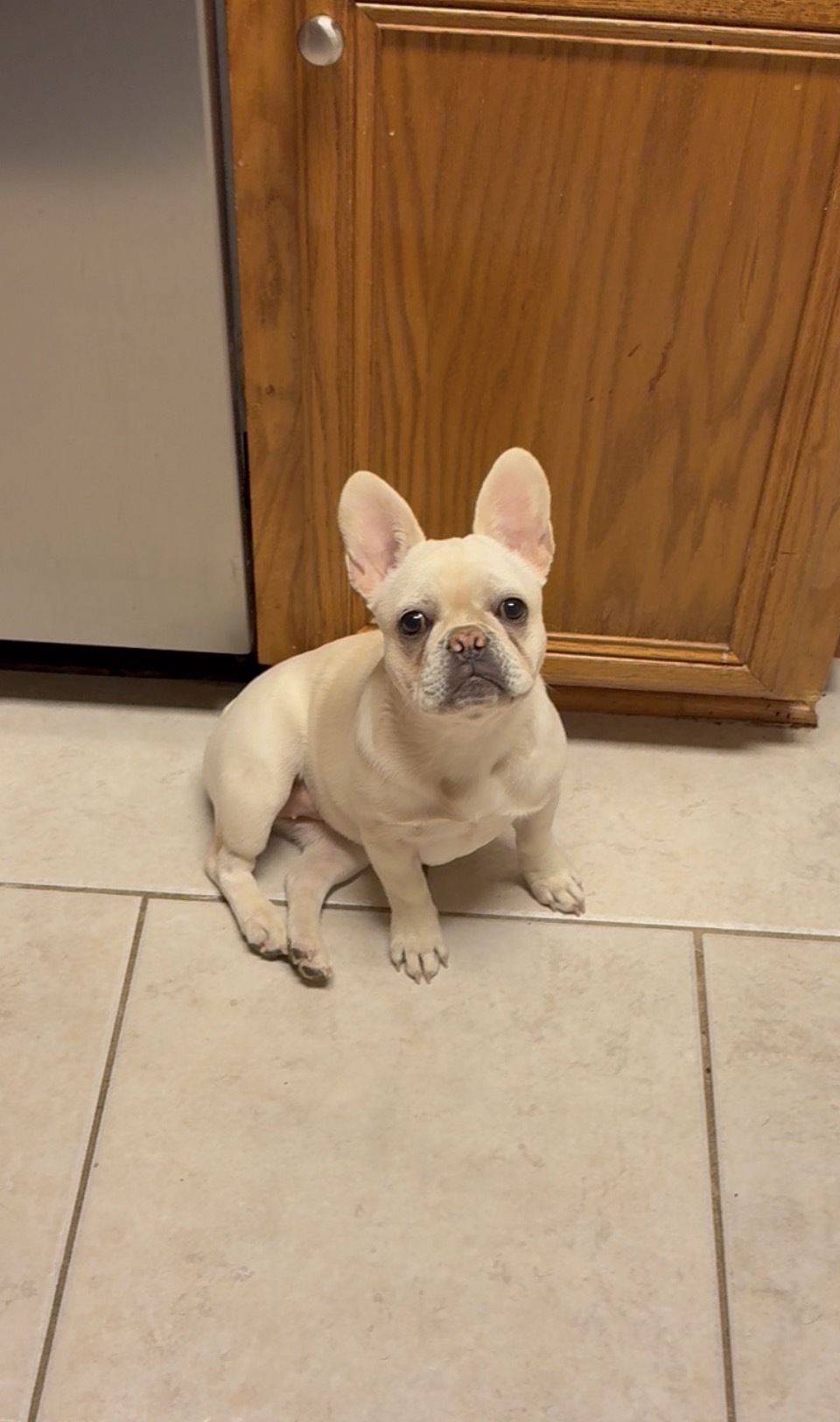 5 year old French Bulldog. Black brindle. Loves to bounce up and down to get attention. He got out of the gate with my 7 month old white female frnchie Daphne. Reward if found.