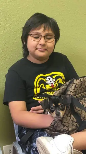 Is black, with white spot on her chest and brown spots on her face, and legs, she very friendly and active, if this is your dog please show me proof, I really wanna return her to her owner, I feel sad for her she is just a baby that was wondering around by herself.
