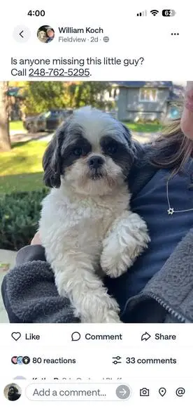 Champ is a white and black shih tzu poodle mix with short, wavy hair. He has brown eyes. He ran off after being attacked by a loose dog in our Snellville neighborhood while I was walking him. I ran after him and looked for him for hours but can’t find him. I just got him last month so he doesn’t know the area well. He is 1 year old and is not wearing a collar. He’s a sweetheart and very friendly but may still be frightened and hiding or wandering right now—if seen, please call me: 678-873-9290