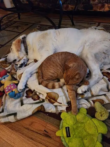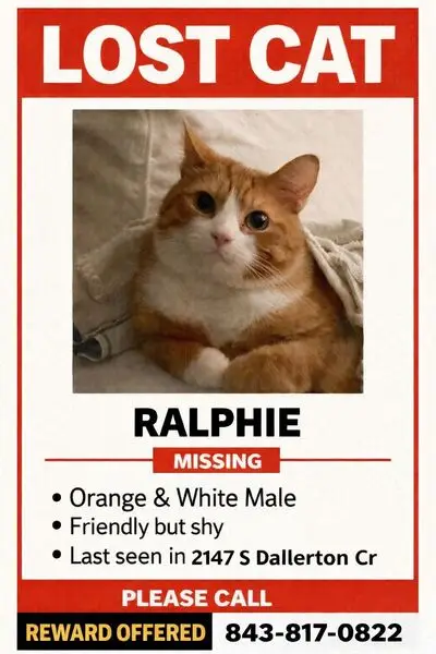 Orange and white male with a collar around its neck with a bell. This cat was found under the hood of my daughter's car I don't know how long it's been there It was stuck looks like it lost some weight but we found it February 21st 2026
