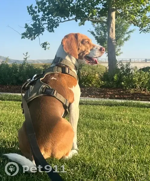He’s a light brown and white beagle, with green eyes. He’s small/medium sized. He’s very friendly but really fast and loves to be chased (Don’t chase please). He escaped through our front door when it was unlocked. :(