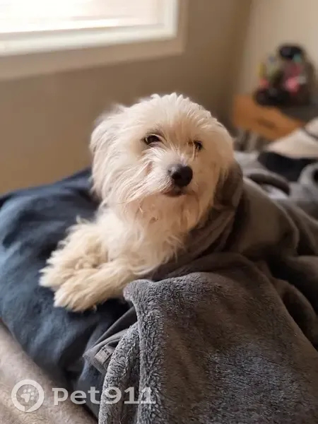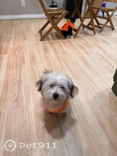 He is white and a little bit of black on his ears and teal. He’s name is Chucky 2 year old shitzu mix with chihuahua. He went out to my yard and run away usually he goes for about five minutes and come back not this time.