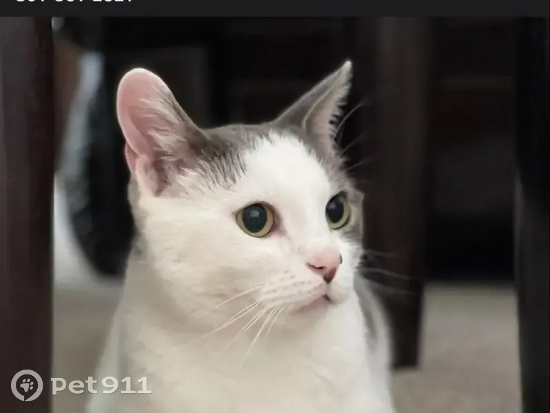 Fluffy is a white miniature cat with gray markings and a gray tail. He went missing late on November 5th from our home. He will run if approached by non family members.