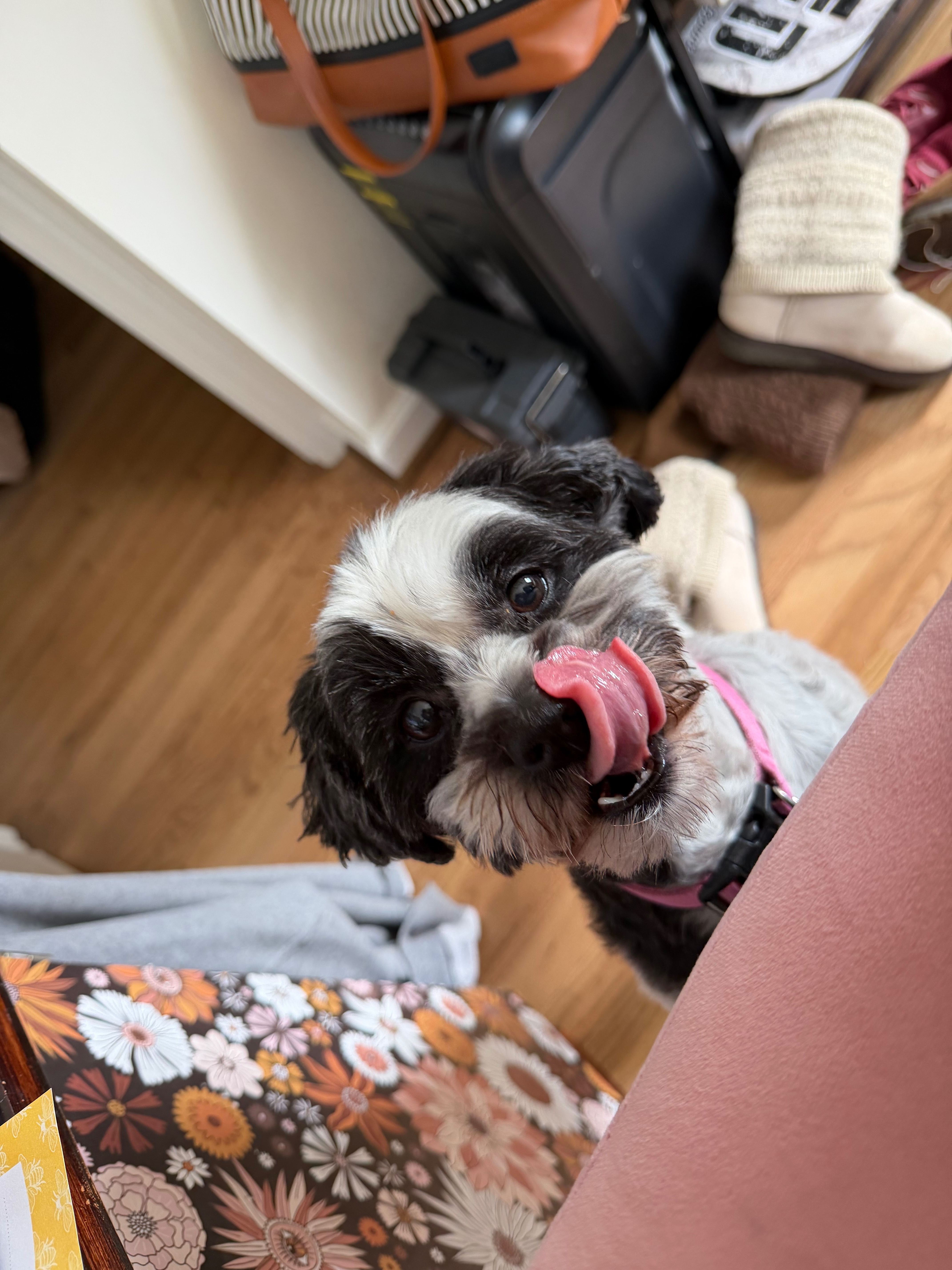 Black and white female. No collar (she slip out from vet office who had her). She is scared of most people. She ran from them. And they lost sight of her. She has addisons disease and needs seen asap. Belle Belle is her name. She is about 15 lbs