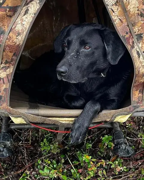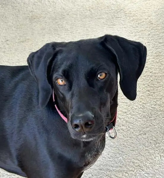 Beautiful male black lab. He was running up Evergreen yesterday morning (4/7/26). Scanned with no chip found. Would only be a guess for age, maybe between 2 and 4 years old.