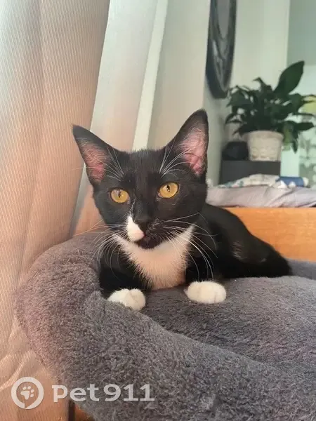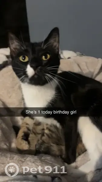 She’s black and white with a white patch by her nose white belly and white paws she’s sweet but skittish and she’s tiny. Shes escaped from my friends window