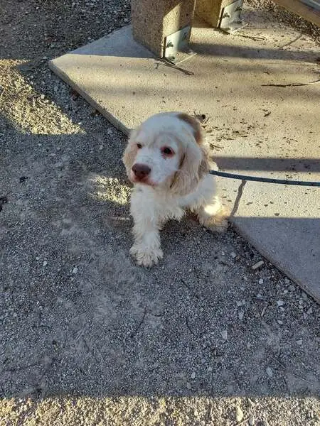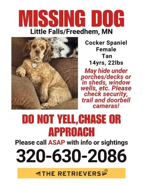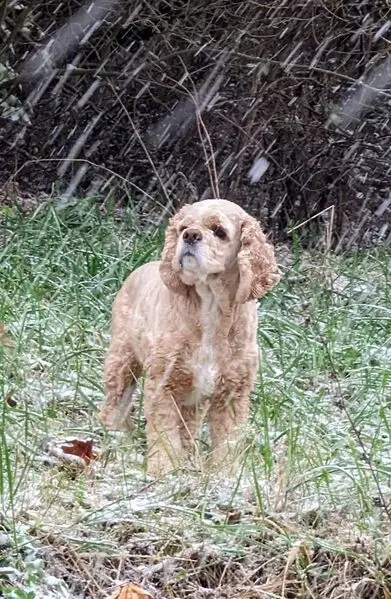 Golden Small Female Cocker - we think OLDER - grey unmarked collar - stood in front of car and made us wait until we open door to let her in - afraid to leave her due to being hit with car
