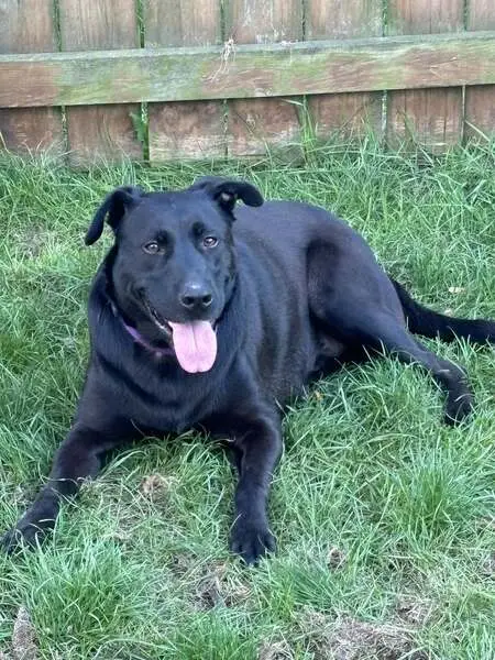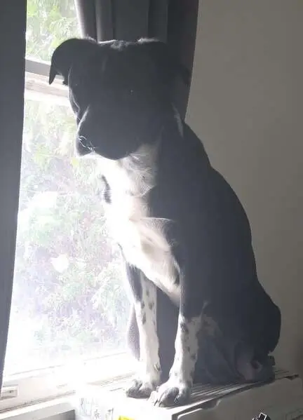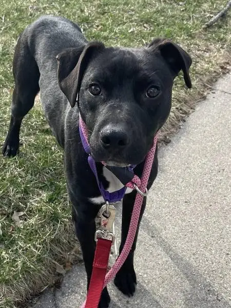 Dog/puppy is black with white patches on his neck, chest, and feet. Very sweet and friendly, loves giving kisses. Found outside Hodgen Tech Academy without a collar. No chip and has not been spayed.
