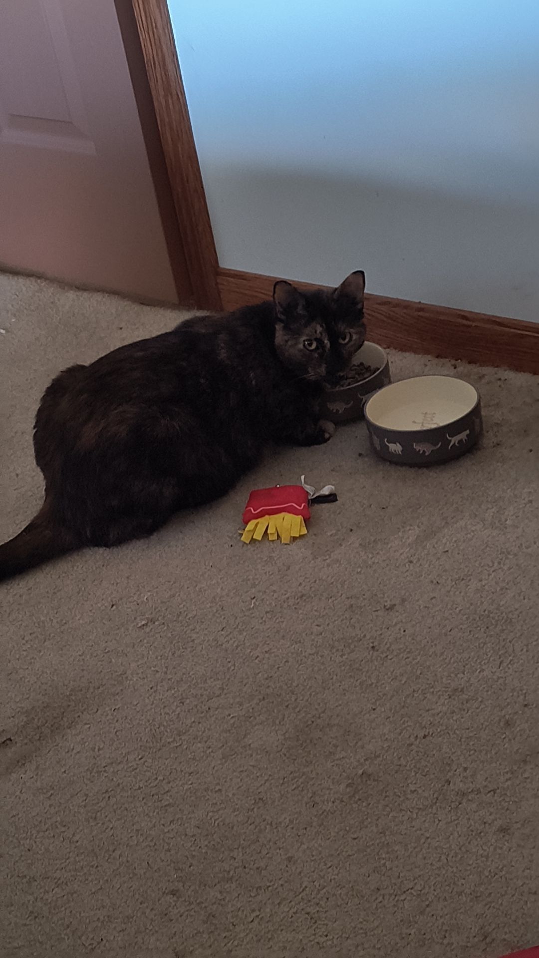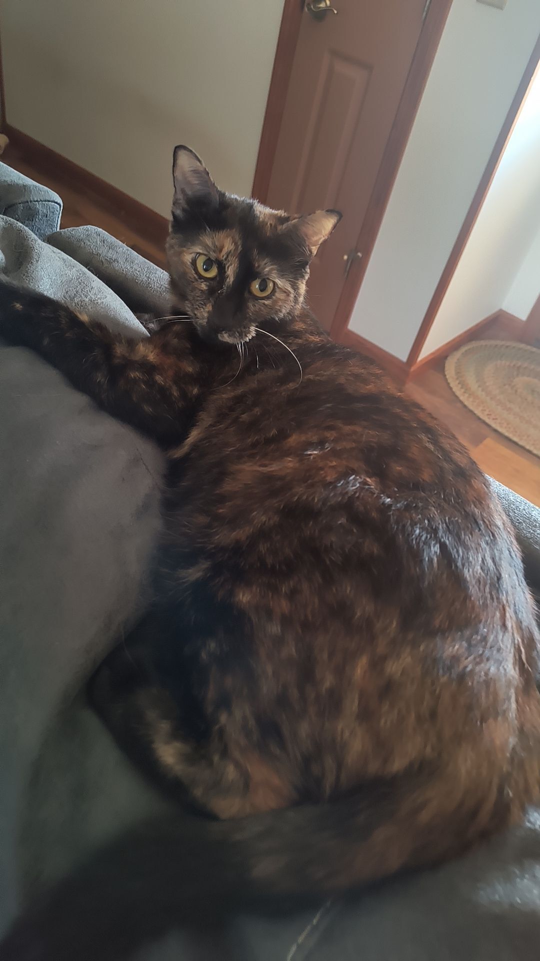 Piper is a turtle shell, black/orang/white mix but she is mainly black with patches of orange/white she is very cuddly and is super sweet and kind hearted, she got out when no one was paying attention and we haven't seen any signs of her even on cameras and we tried putting her litter box, her cat bed, one of our unwashed shirts for scent and her food and still no signs of her