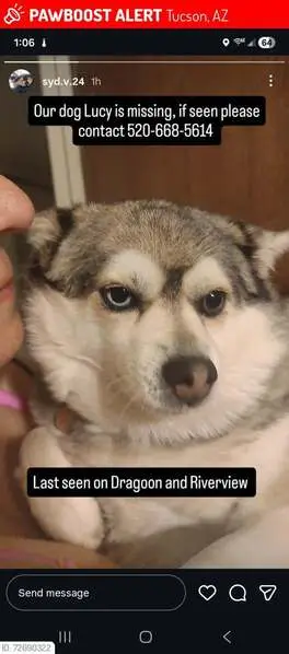 Maybe Shephard/Husky mix. Eyes are Blue or Gray, depends on the lighting. Came right up to my front door & my Ring camera rang. Very friendly, gentle. Loves playing catch with a ball. Light brown or tan with dark brown markings. Legs are all tan. Someone must be missing him! He is very smart & very friendly & very gentle, good manners. UPDATE He can be found at MCACC 2500 S. 27th Ave, Phx, AZ