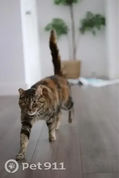 Lost Female Cat, Winstead Court, Sunnyvale - brown tabby with yellow-green eyes