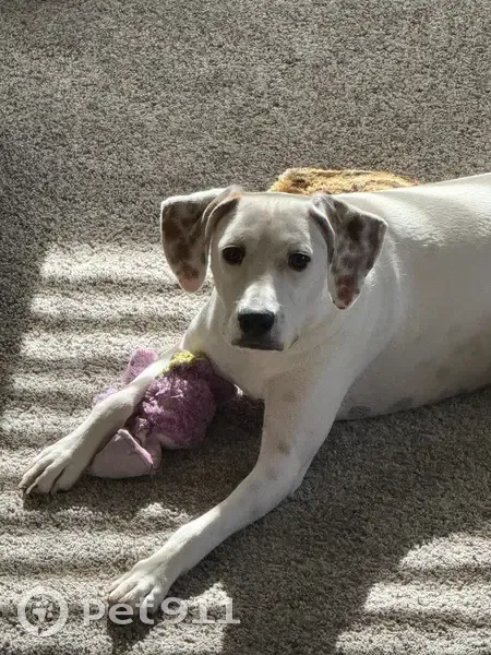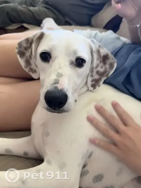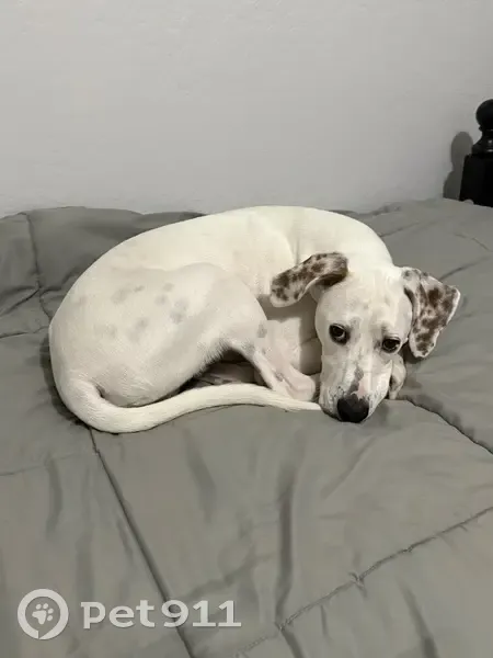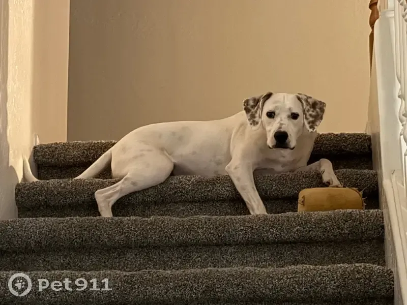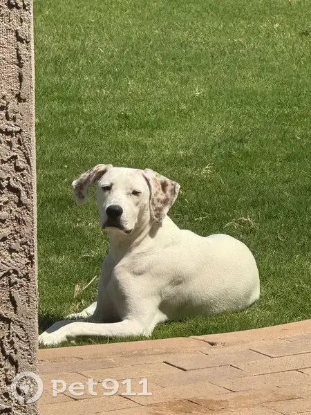 He is a medium-sized Dalmatian and German Shorthair Pointer mixed. He is 1 year and 2 months old. He has white fur and one spot on his back and spots on his paws, ears, and face. He’s wearing a retractable leash, an Arizona State University collar, and a tag with my family’s information on it. He is also microchipped. My parents, Michelle and Andy, were walking him in the Bell West Ranch neighborhood when my dad accidentally dropped the leash, scaring Sparky and causing him to run, as the leash dragged on the ground, it scared him more and was last seen crossing Bell Rd to WinCo.