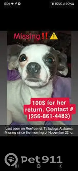 Chihuahua WHITE WITH BLACK SPOTS. She was in the front yard. She answers to Stella she is very friendly loves car rides and treats she is small but is well taken care for.