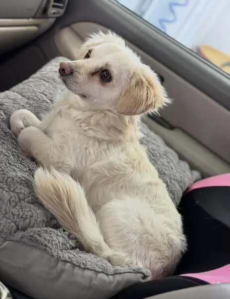 ACROSS FROM AL LOPEZ PARK This poor dog has been roaming around for 2 to 3 days and I finally was able to catch her. I have her in a cage. She seems like she was an inside dog super white teeth really calm.