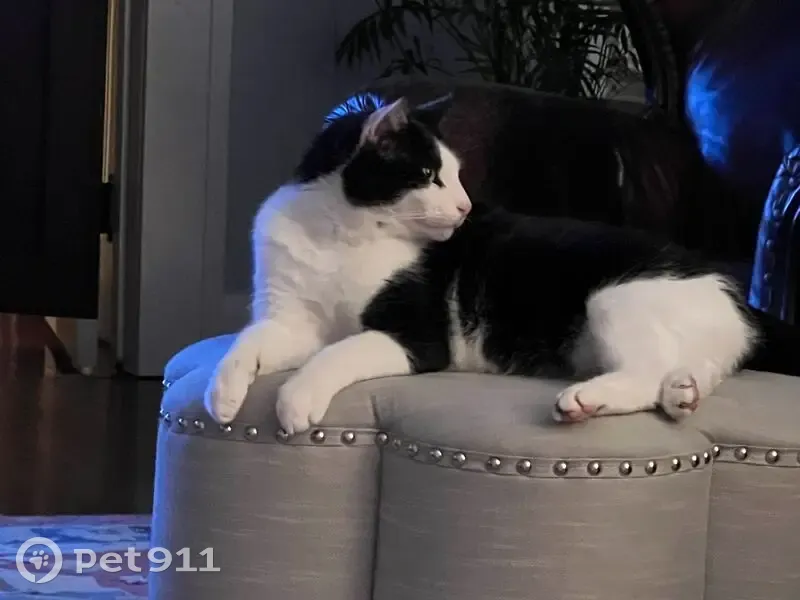 Black and white tuxedo male. Apx 10-12 lbs, neutered- very friendly and cuddly but shy. We let him out in fenced yard and he left to explore. He was not used to this area because we moved 2 years ago and did not let him out. He is lost in neighborhhood of Bayshore Beautiful. Last seen on Jetton between S. Georgia and Marti