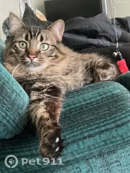 He’s kind of skittish she does not like to be held, but he loves food. He’s a fluffy, soft, brown tabby with beautiful green eyes and a super pink nose. He loves to play fetch. We miss him incredibly help. Bring him home. 801-550-3872
