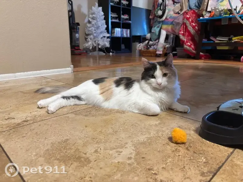 Miso is a 1 year old white, orange & black calico indoor cat. She’s very sweet, vocal & loves to cuddle. She does not have a collar, but is microchipped. Unfortunately on Sunday 3/29/2026 at around 7:30 pm, she went missing while heading southbound on the I10 & Southern. She was in her cat carrier in the backseat of the vehicle, somehow got out & we believe the force of the wind at that time blew her out of the window. We have tried looking for her, but no luck. She’s my 10 year old daughter’s cat. My kids are heartbroken over this. & we are very worried about her.